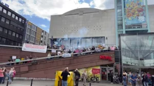 Als der Gemeinderat ins Rathaus einziehen wollte, führte der Weg der Mitglieder mitten durch unsere Demonstration. Wir begleiteten sie mit lautem Protest: Rasseln, Glocken, Trillerpfeifen und der Ruf „Wir sind hier, wir sind laut, weil ihr unsere Zukunft klaut!“ machten deutlich, wie ernst uns dieses Thema ist.
